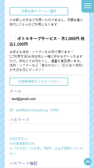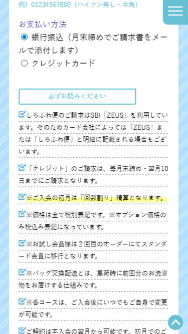 ※会員コースの変更、ボトルキープのチェックはいつでも変更可能です。