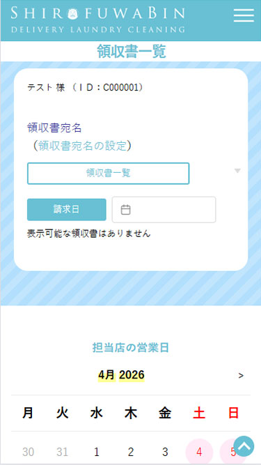 こちらのページでは領収書一覧を確認、ダウンロードすることができます。